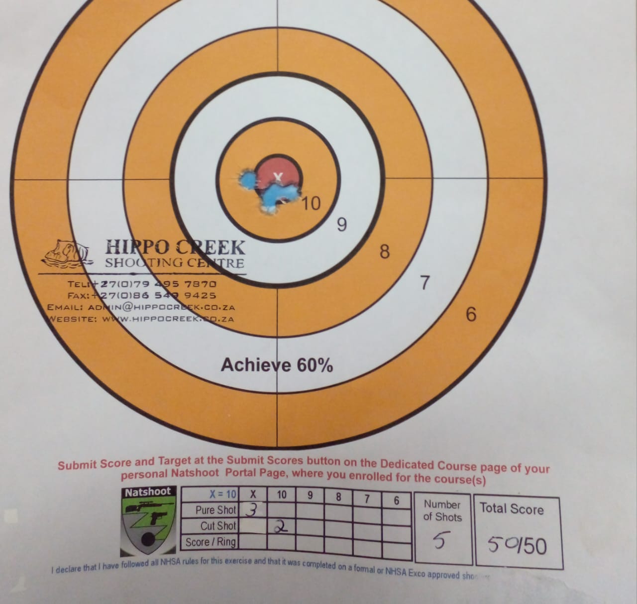 Note from Rudie (Afrikaans): "Julle punte so 1450 vps op die baan dan group hulle mooi op 100m." Translation: “At about 1450 ft/s on the range they group nicely at 100 m.”